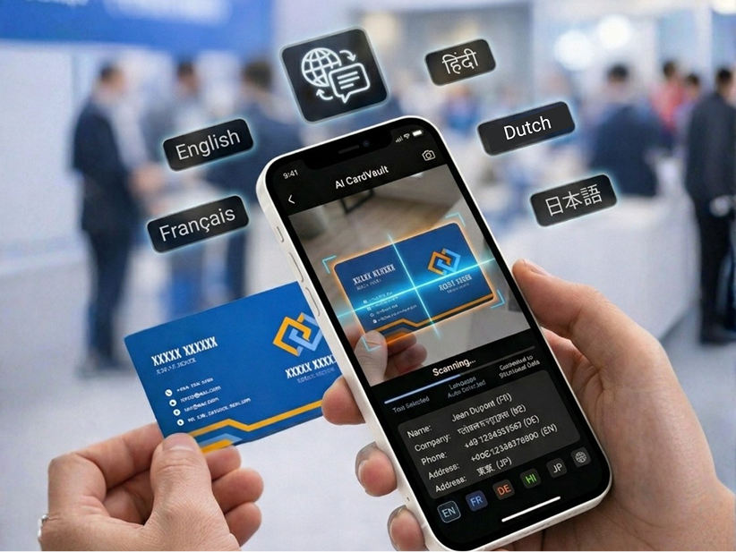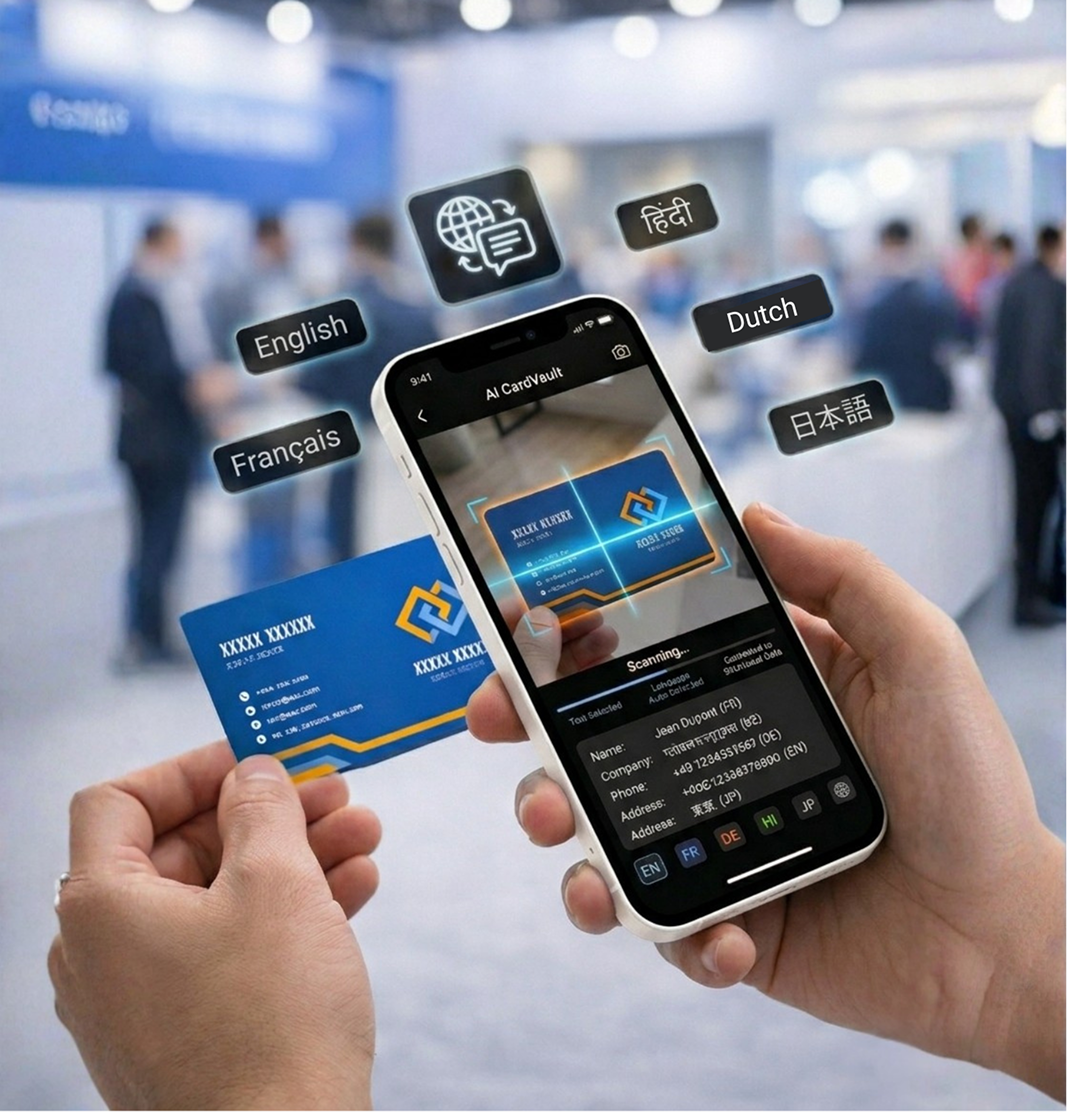 AI CardVault uses advanced AI-powered OCR to scan business cards from global trade shows and exhibitions, accurately extracting details even when cards are printed in different languages or formats.