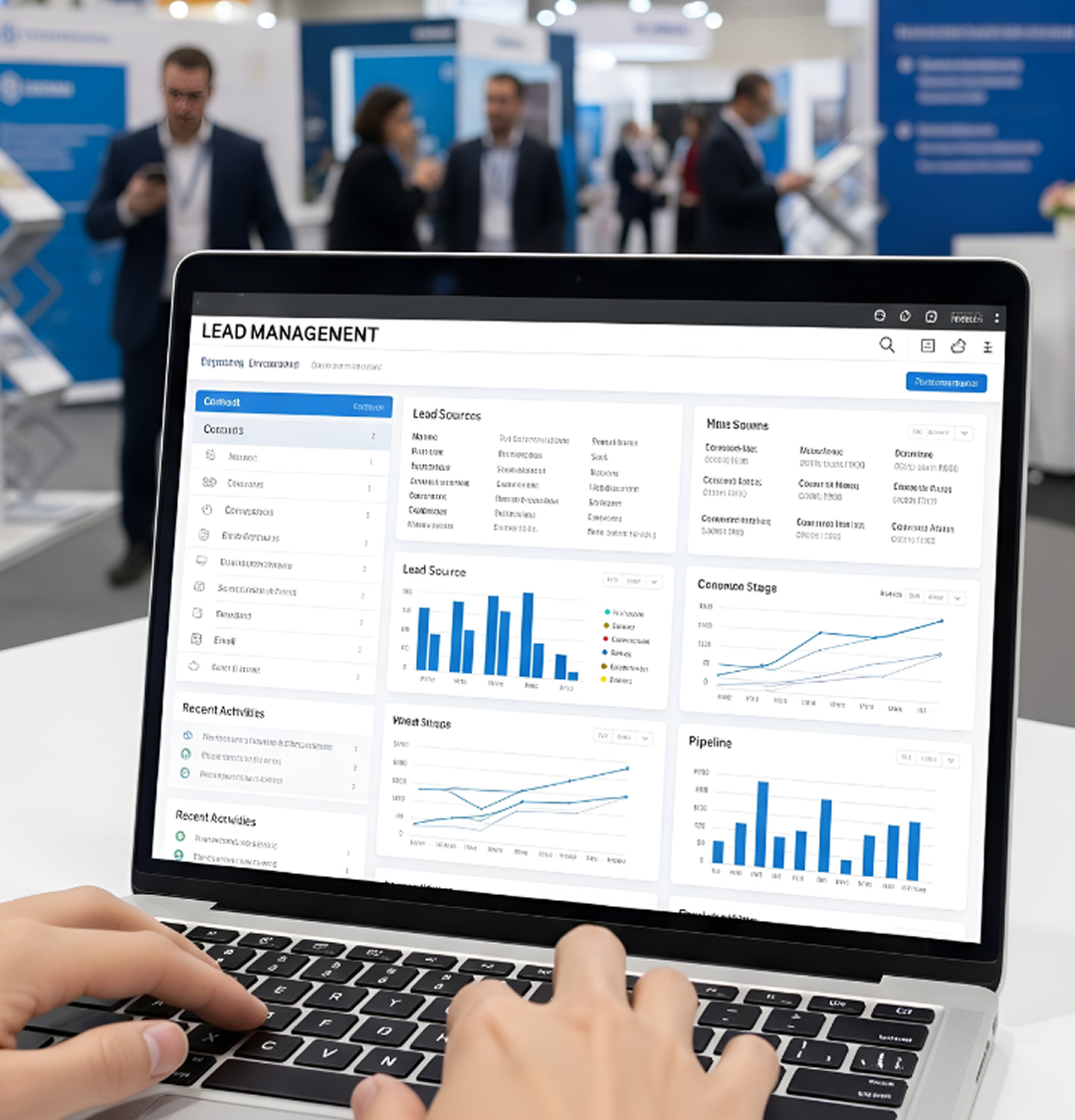 The admin dashboard allows authorised users to manage events, team members, and lead data from a single panel. With role-based access, each user sees only what they need, while all data remains protected through strong data security and cloud storage.